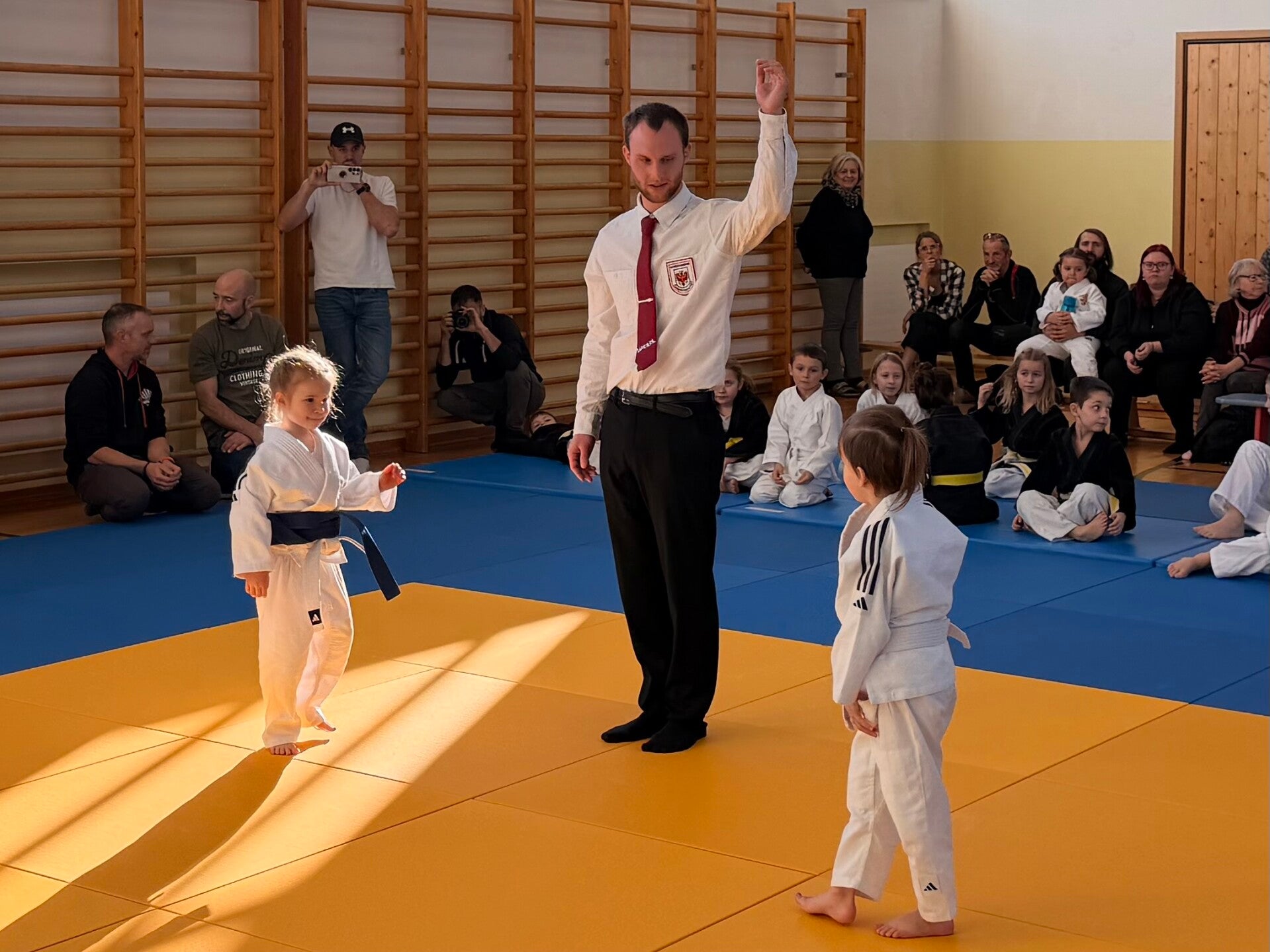 Eine wichtige sportliche und gemeinschaftliche Botschaft waren die Grußworte, die der Bürgermeister der Gemeinde Wängle, Florian Barbist, an die Judoka richtete. Gerade in der Weihnachtszeit solle die Gemeinschaft im Vordergrund stehen. Dabei verwies er auf die sportliche Fairness, den Weg des Judos (= sanfter Weg), aber auch auf sportliche Leistung.